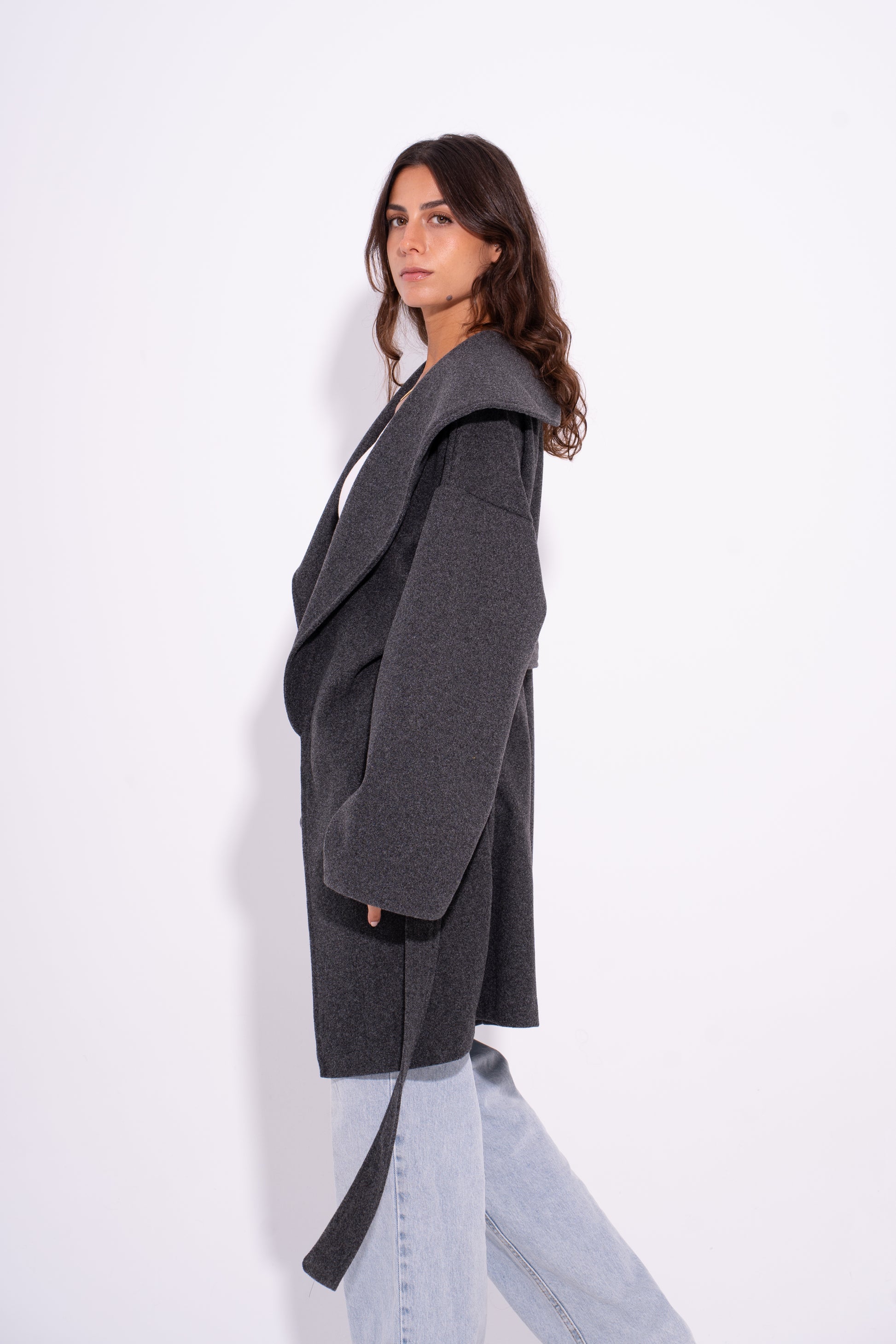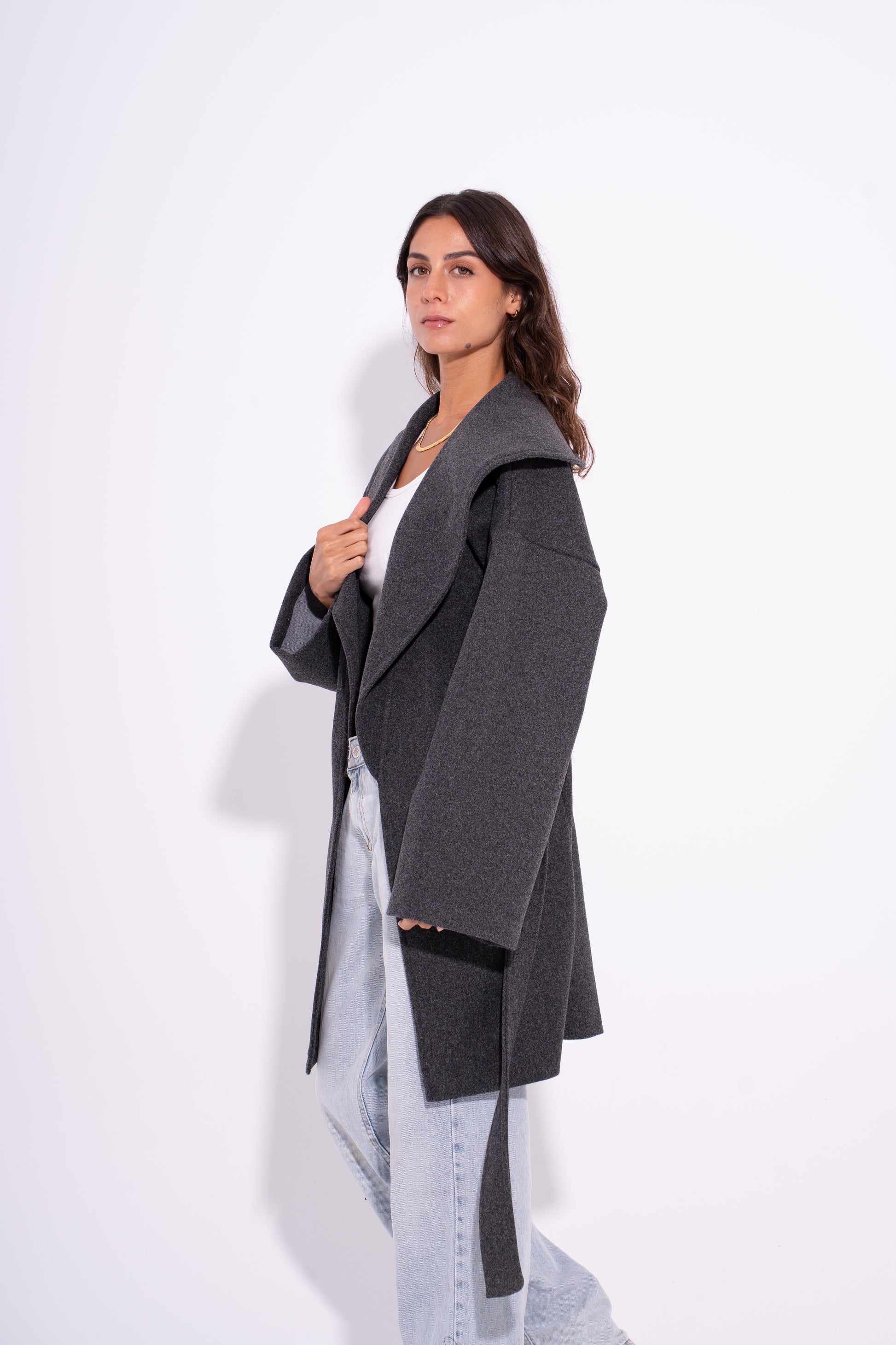 Crafted from premium wool, The Bold Wool Coat in grey offers sophisticated warmth and durability. Its structured design ensures a flattering silhouette while providing excellent insulation against cold weather. Perfect for professional and refined looks, this coat combines timeless style