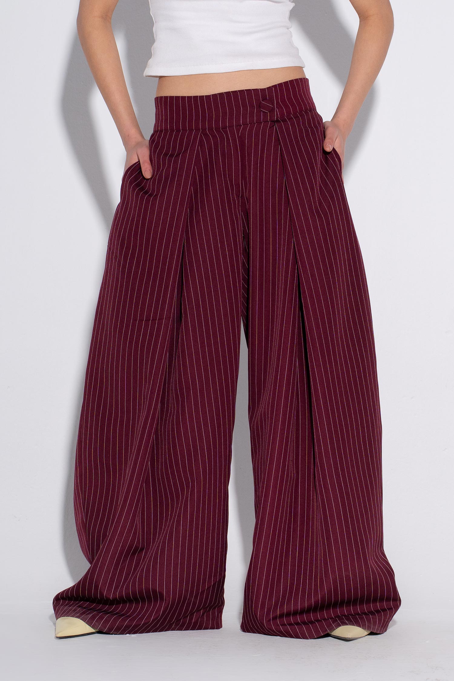 The Summer Boss Pants in Burgundy is your ultimate power piece. This professionally tailored top merges contemporary design with classic elegance, perfect for those who demand respect in every room. Constructed from premium gabardine fabric, it delivers a crisp, structured silhouette that elevates your presence and boosts confidence. The refined cut flatters your frame